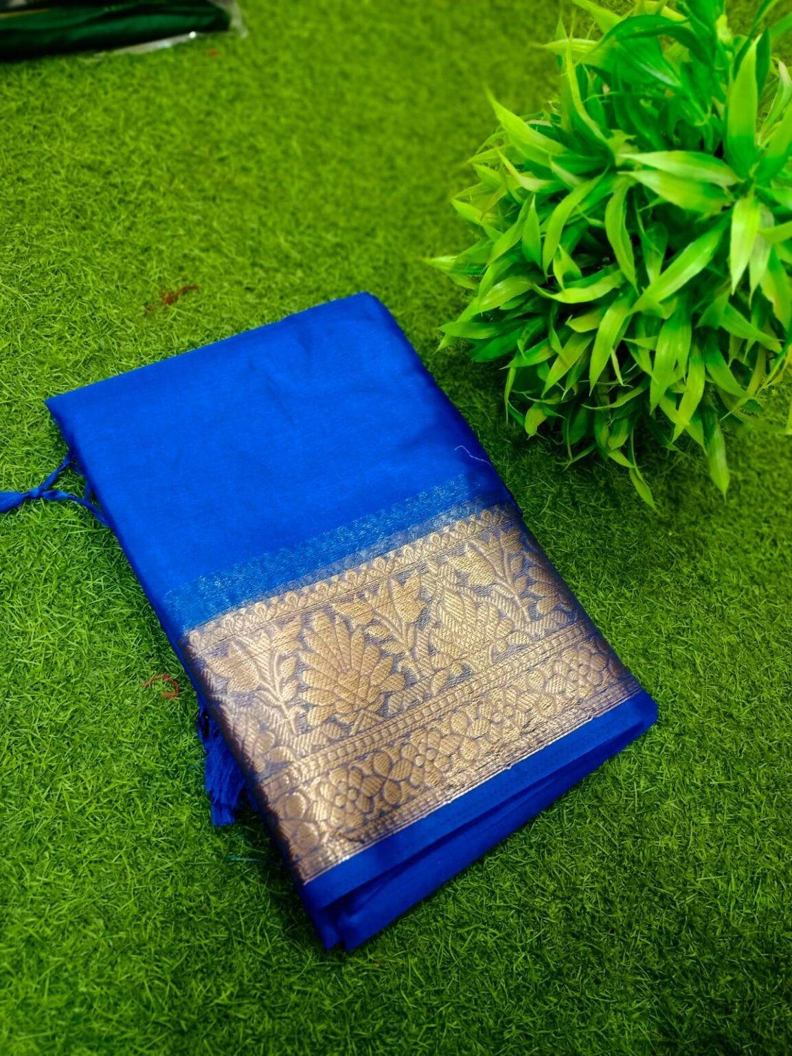 Elegant Handcrafted Blue Maslin Organza Saree with Golden Zari Border & Matching Blouse Piece – Free Size