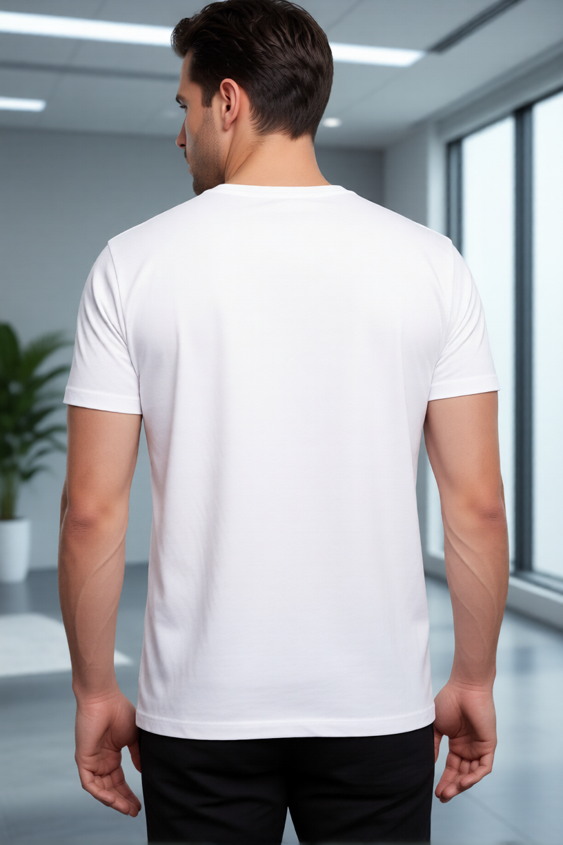 Elegant Sleek Round Neck Let Distract you Front Print Solid Coloured Men's T-shirt (Pure Cotton)
