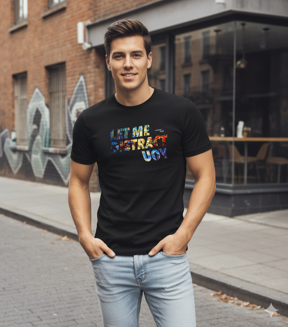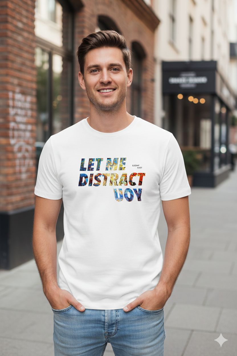 Refresh your casual collection with this Elegant Sleek Round Neck “Let Distract You” Front Print Solid Coloured Men's T-Shirt, tailored for comfort and effortless style. Crafted from 100% pure cotton, this T-shirt offers a soft, breathable feel that keeps you comfortable throughout the day.