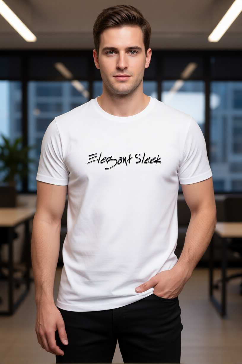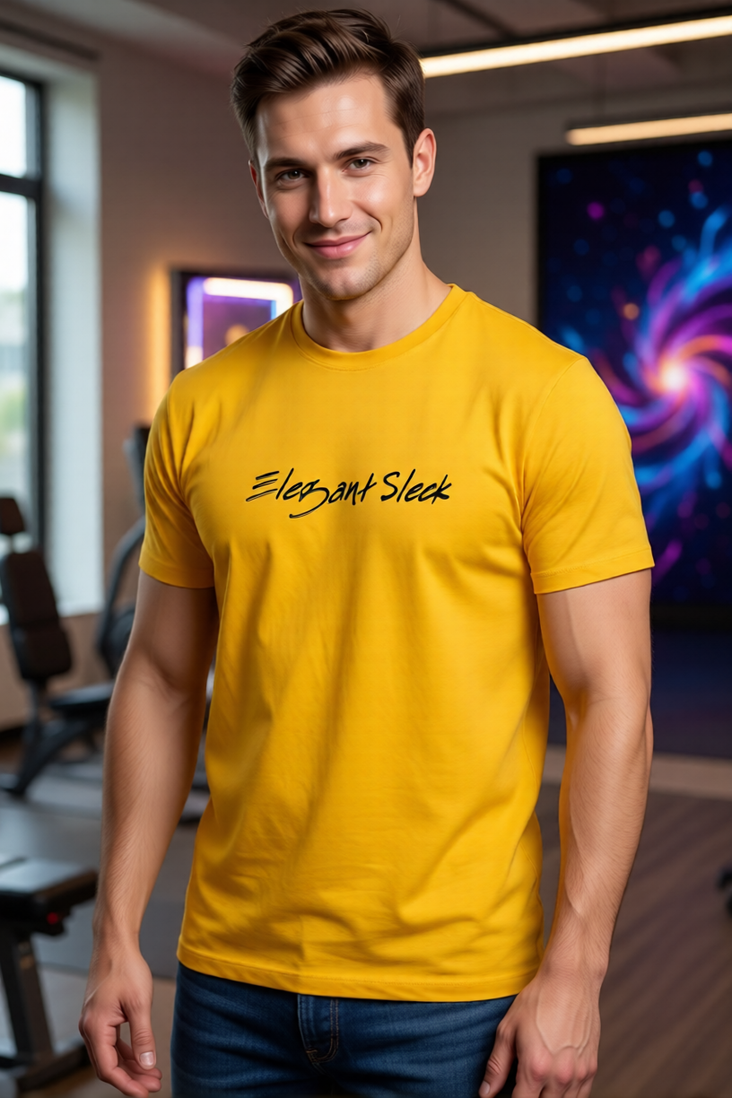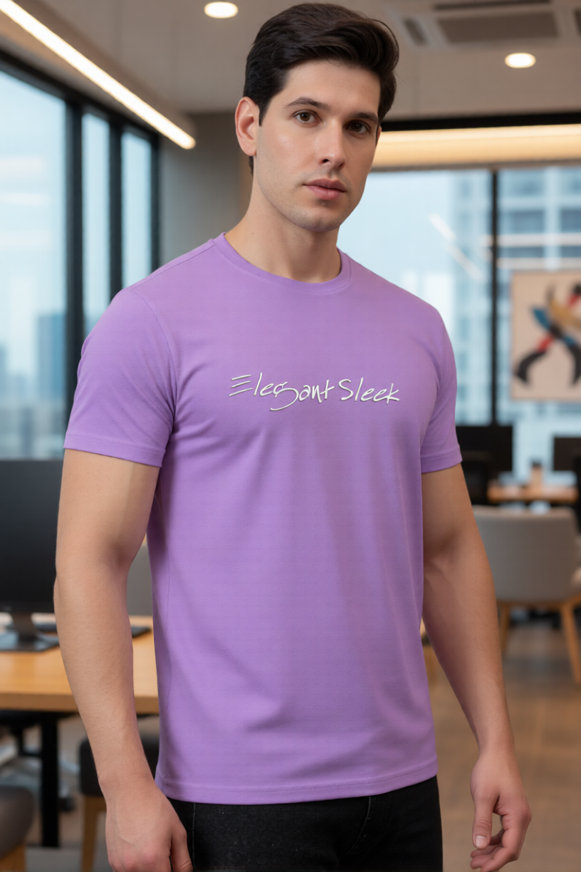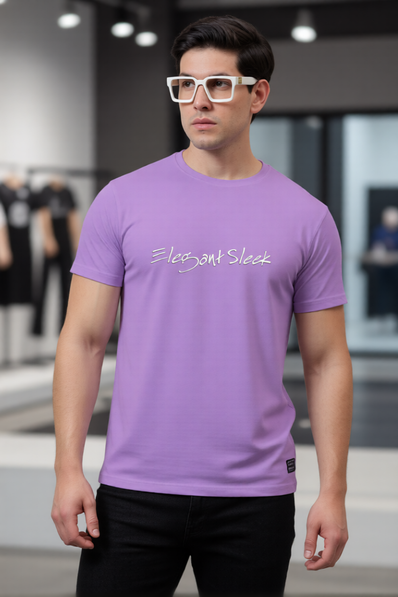Elegant Sleek Round Neck Typography Solid Coloured Men's T-shirt (Pure Cotton)
