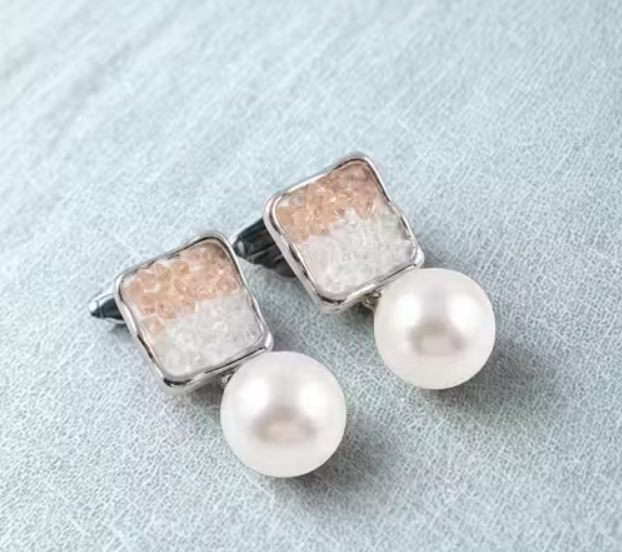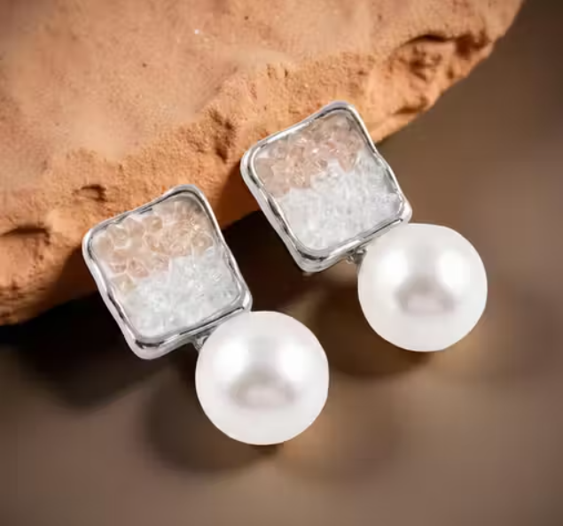 Elegant Square Crystals & Pearl Drops Earrings for Women