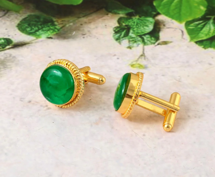 Emerald Lab Grown Green Gemstone Wedding Cufflinks