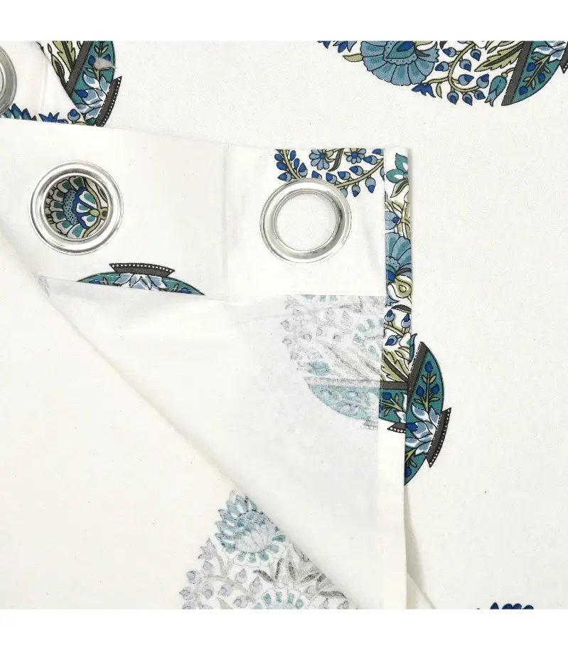 Bring the soothing charm of our Ethnic Padma Block Print Curtains into your home, with a stunning Jaipuri Kairi (mango) flower motif delicately hand-blocked in soothing greens. These curtains are a testament to India's rich block printing heritage, created with the Padma block style on 100% pure cotton fabric.