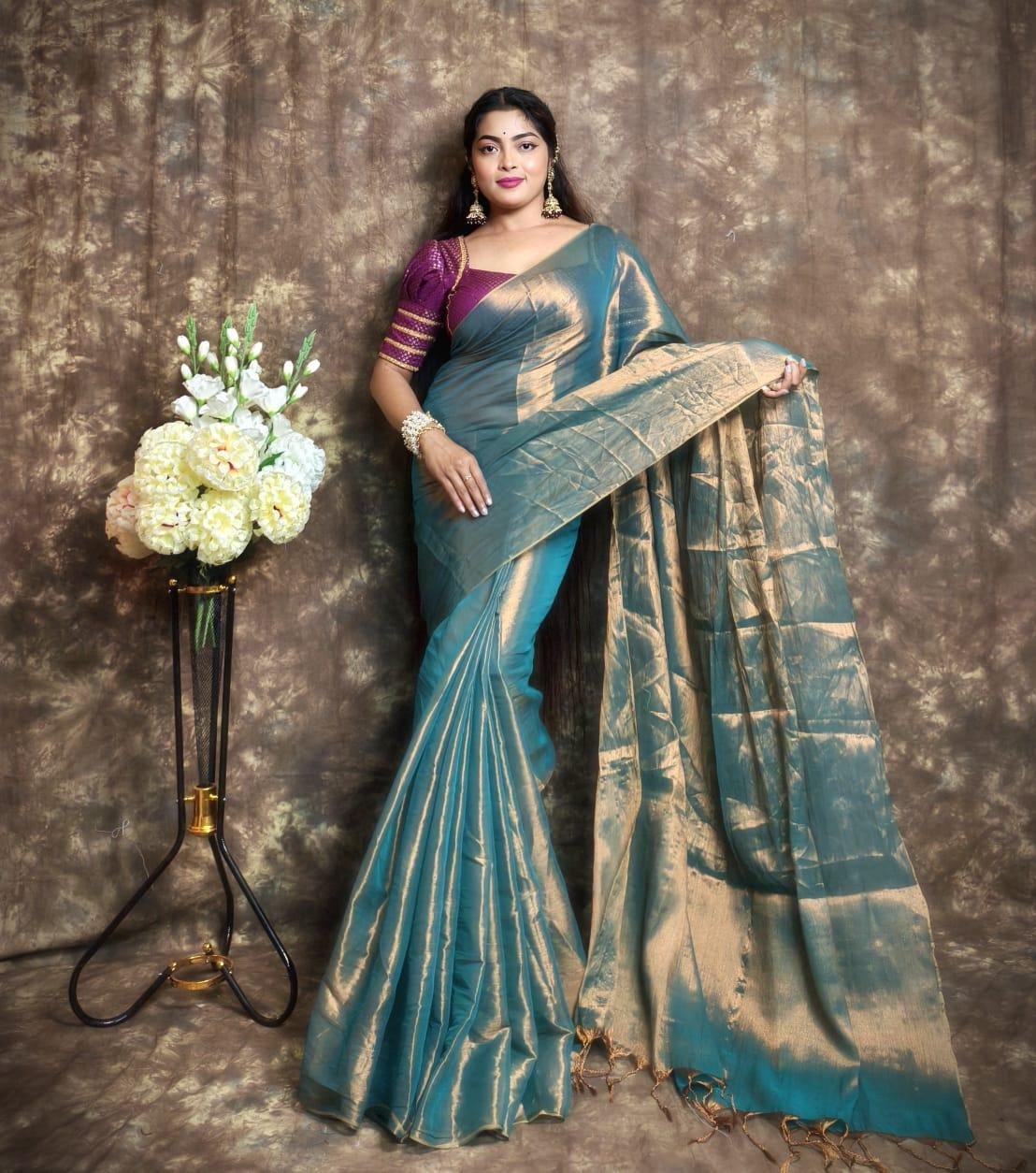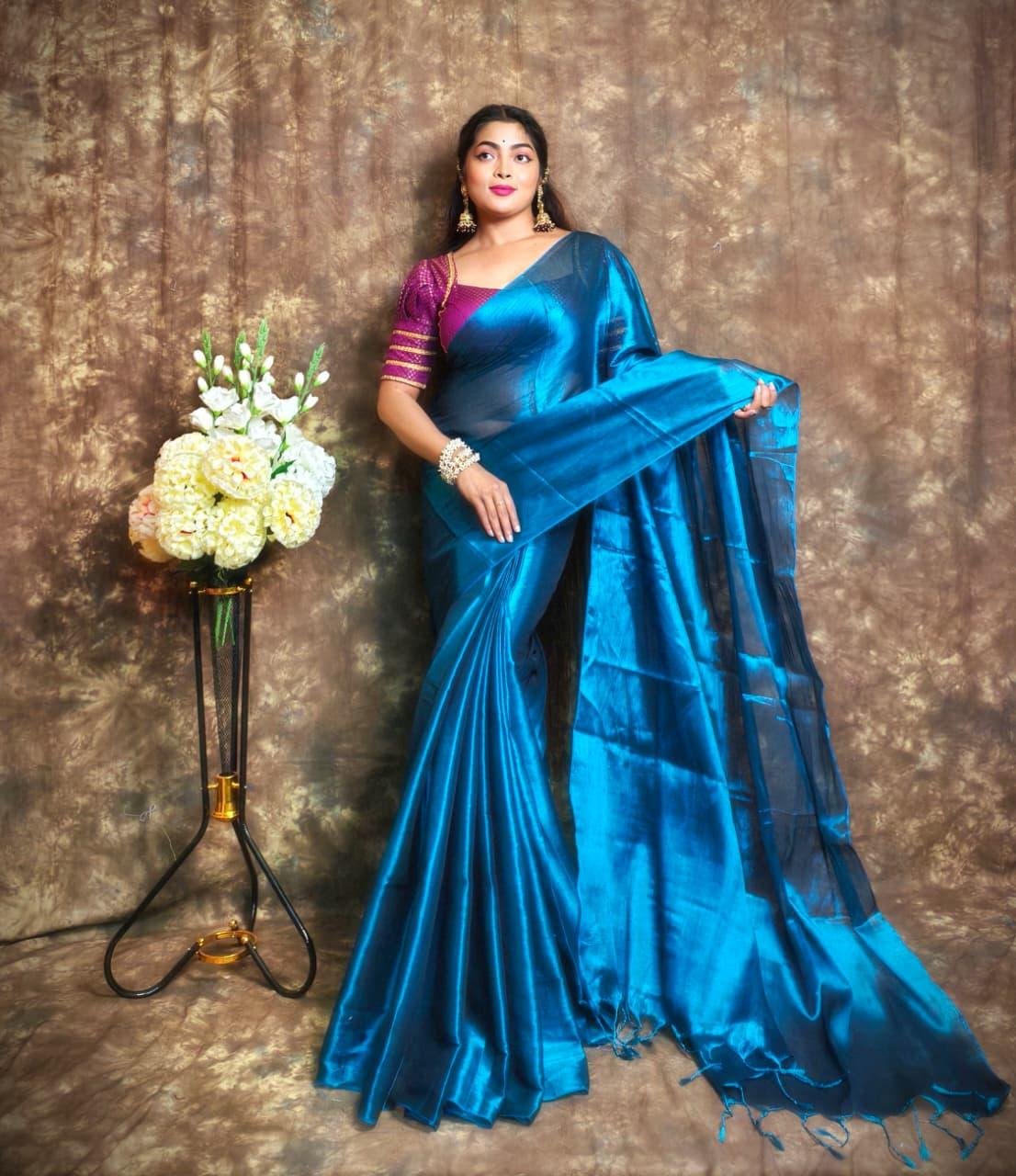 ✨ Exclusive Winter Special Plain Tissue Saree with Blouse ✨