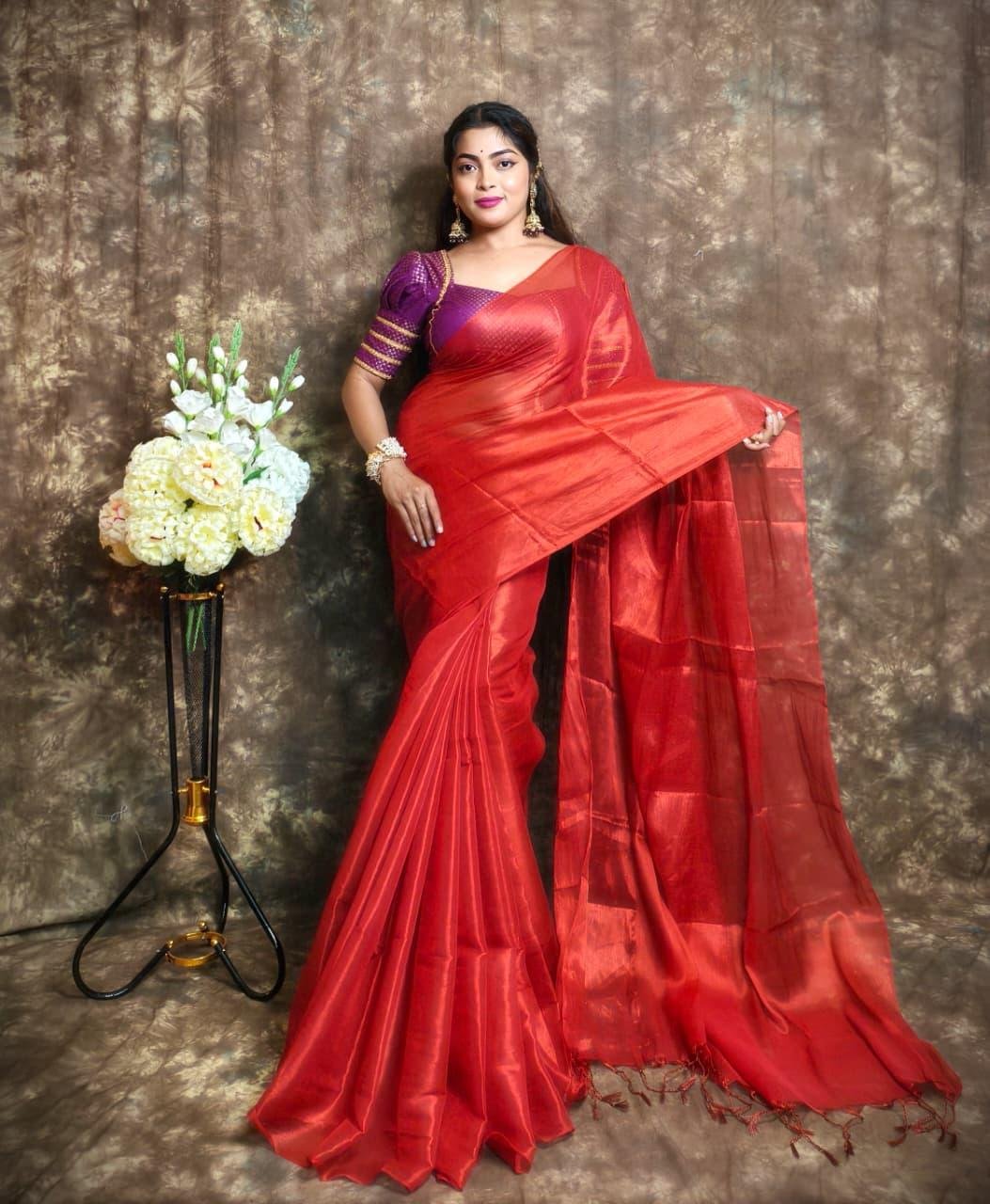 EXCLUSIVE WINTER SPECIAL PLAIN TISSUE SAREE WITH BLOUSE