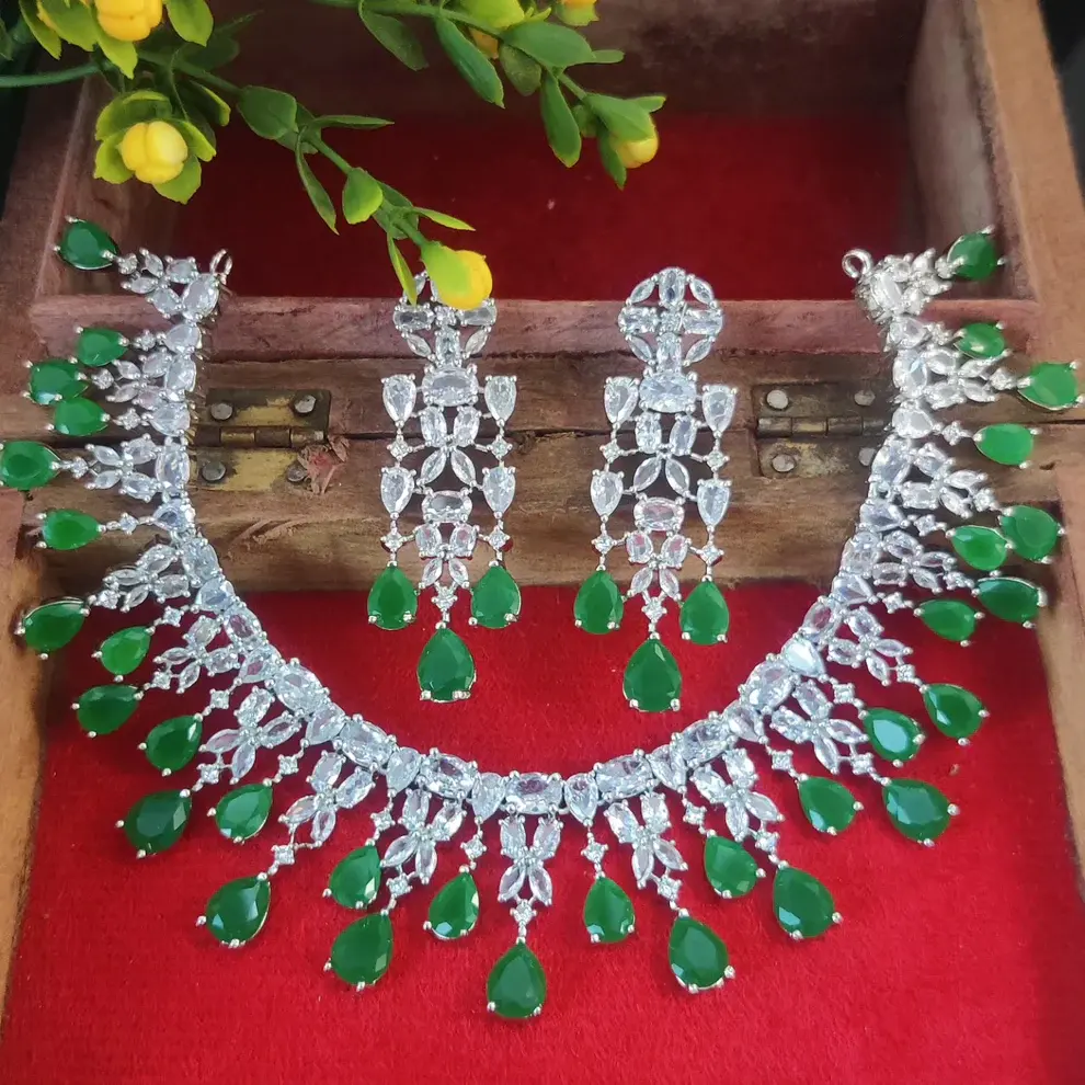 Material: High-quality silver-toned alloy, emerald green stones, clear crystals
