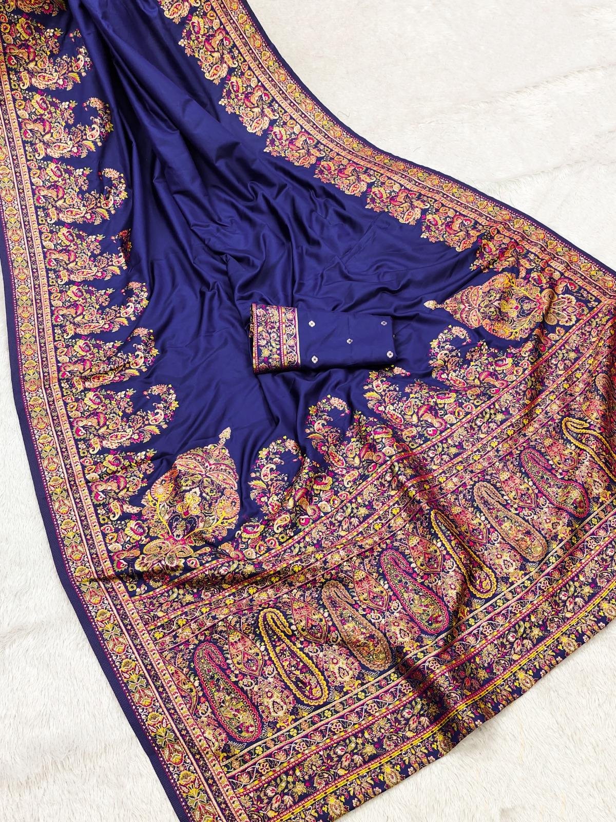 Step into timeless elegance with this Handcrafted Kashmiri Pashmina Silk Saree, a festive masterpiece that celebrates heritage with sophistication.