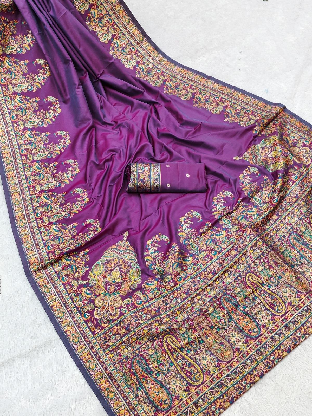 Festive Handcrafted Kashmiri Pashmina Silk Saree