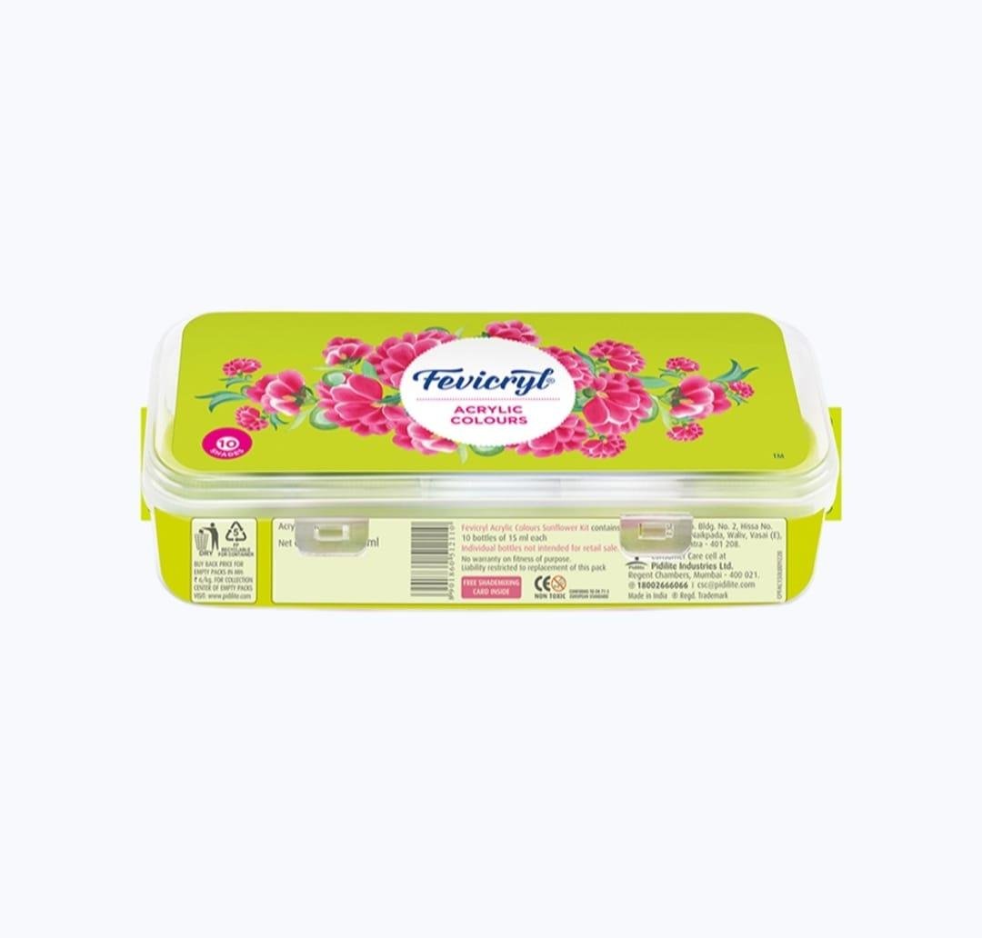 - Pidilite Fevicryl Acrylic Colors Sunflower Kit (Pack of 10) – Great price option that includes all essential shades in small bottles — easy to use and safe for all ages.