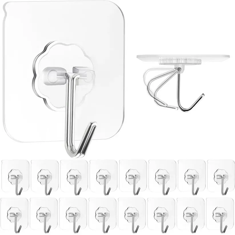 - 10 Pcs Heavy Duty Flower Adhesive Wall Hooks Set Transparent Self Adhesive Utility Hooks for Home, Kitchen, Bathroom Office Strong Load Bearing, Waterproof Removable Wall HangersDescription The 10 Pcs Adhesive Wall Hooks Set is a practical and versatile solution for organizing and hanging items without the need for drilling or damaging your walls. These transparent, self adhesive hooks are waterproof, durable, and designed to hold strong weight capacity, making them perfect for both smooth and slightly rough surfaces. With their easy to use peel and stick application, they are ideal for hanging kitchen utensils, bathroom accessories, clothes, keys, decorations, and more. Their invisible design blends seamlessly with any wall or dcor, offering a neat and modern storage solution.