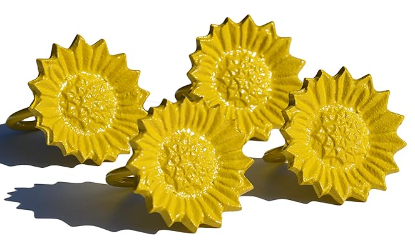 Flower Napkin Rings Set of 4 Handcrafted Décor (Yellow Antique)