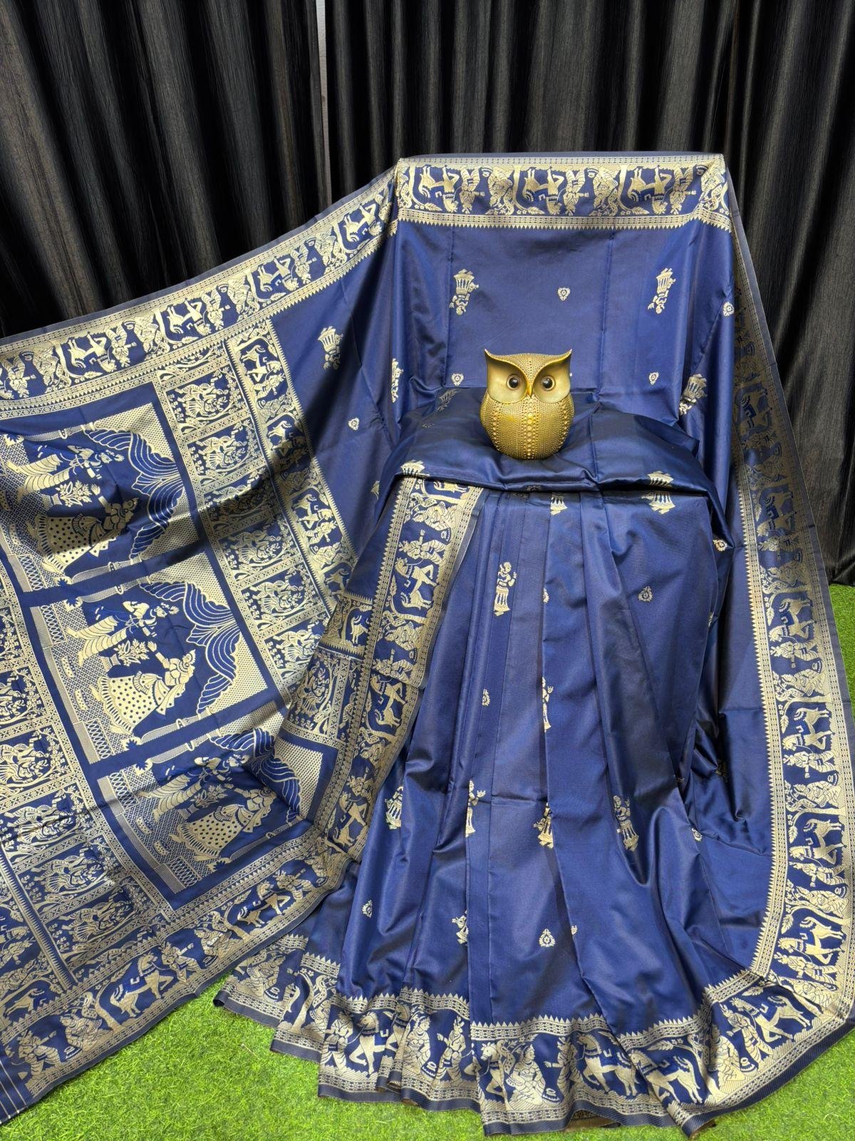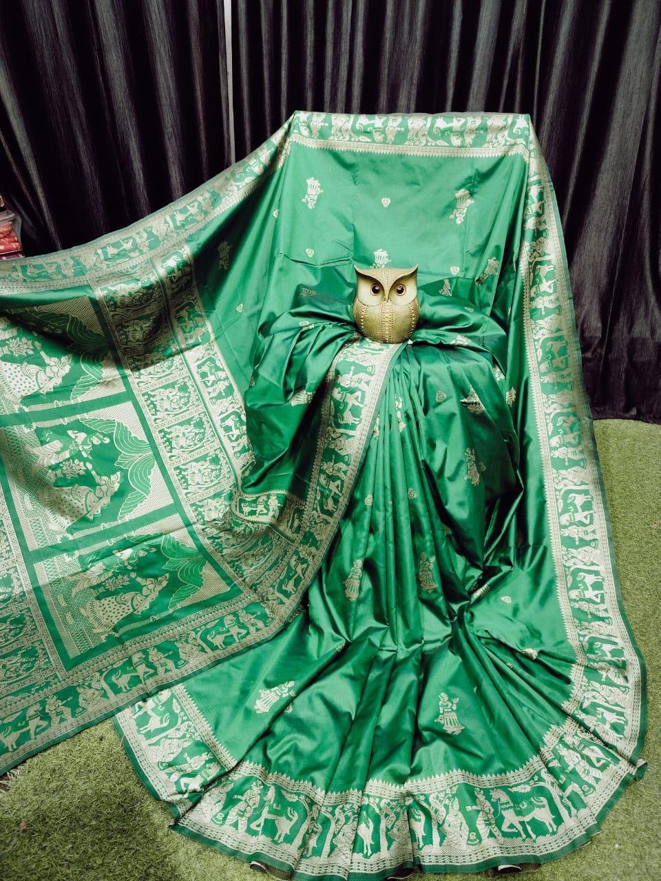 Forest Glade – Handcrafted Bishnupur Silk Saree with Golden Accents