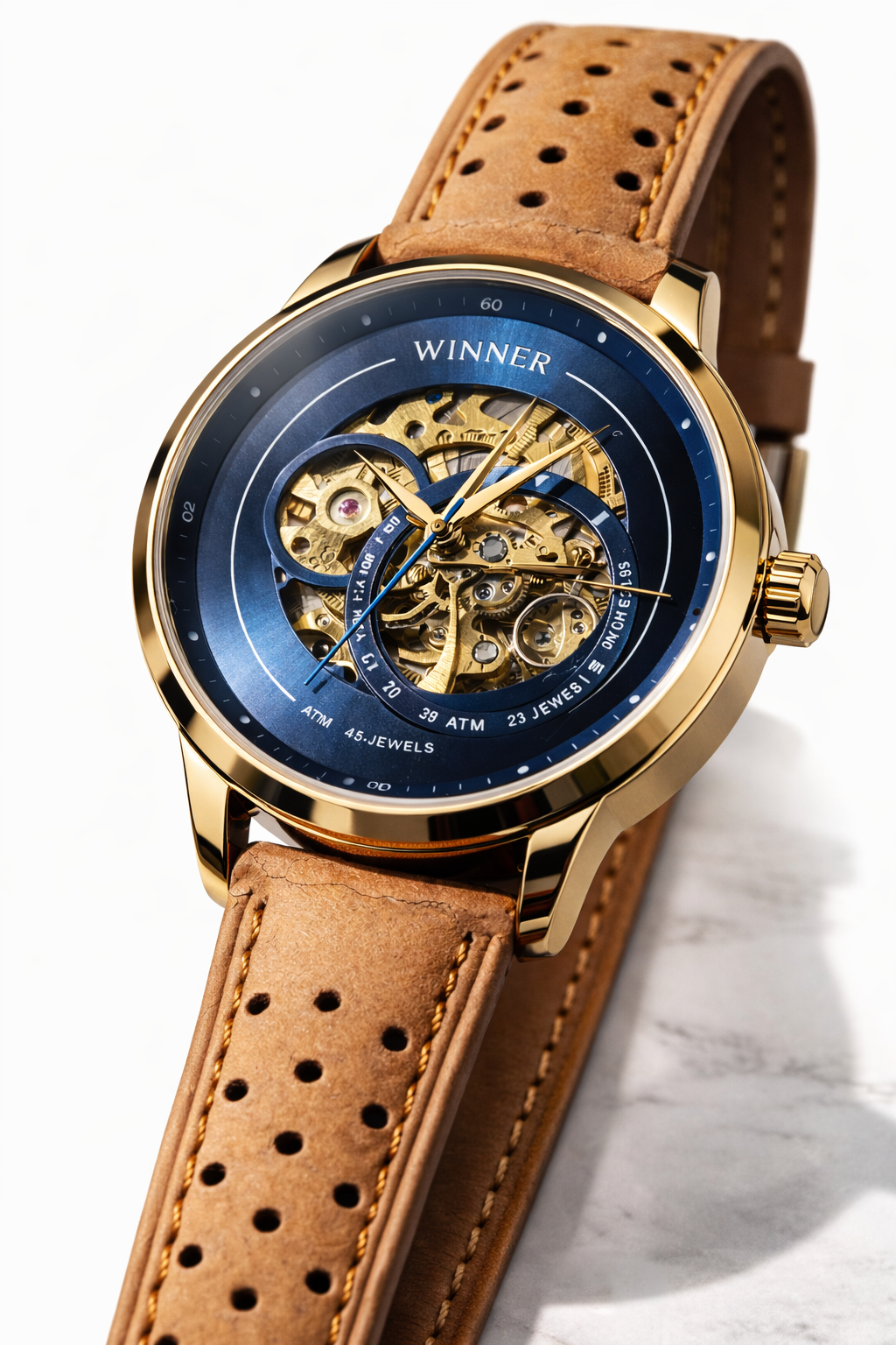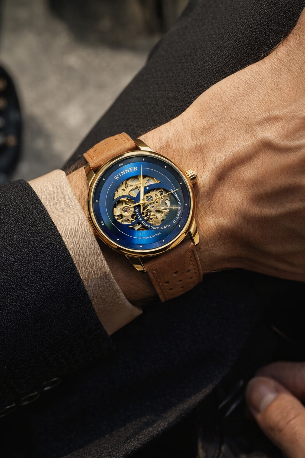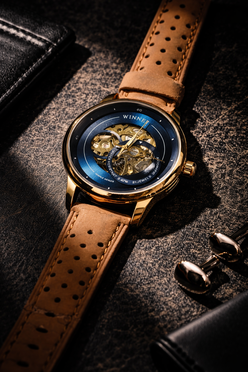 Unlike quartz watches, this mechanical timepiece allows you to see the heart of the watch in action. The exposed working gears on the dial and the transparent case back showcase the intricate movement, where each component works in perfect harmony. This is not just a watch—it is a living mechanical system, constantly in motion.