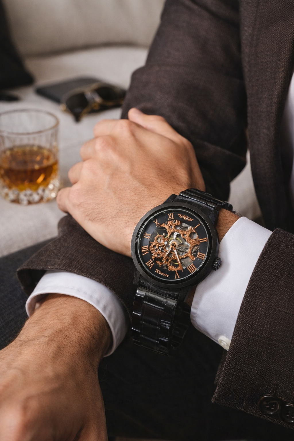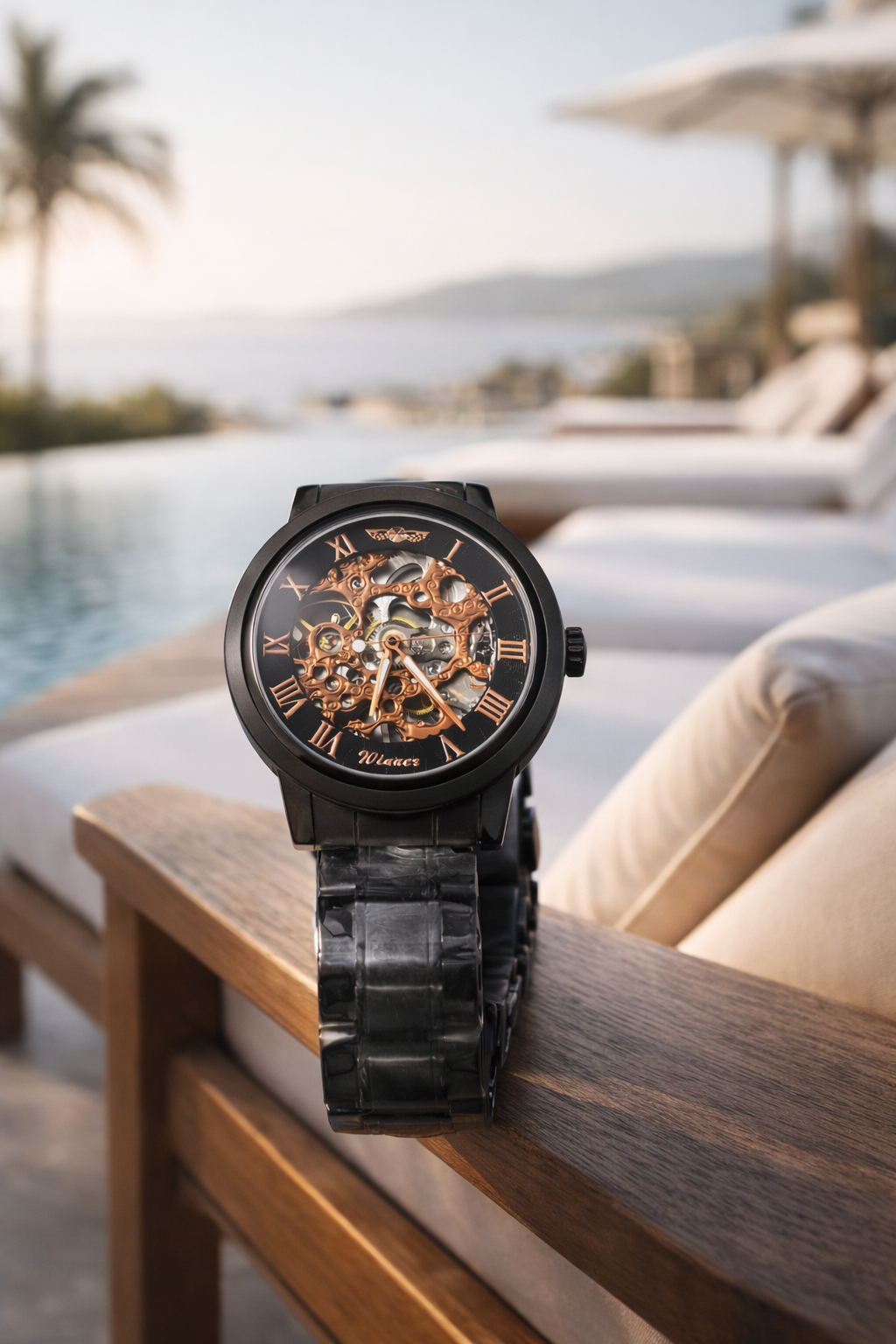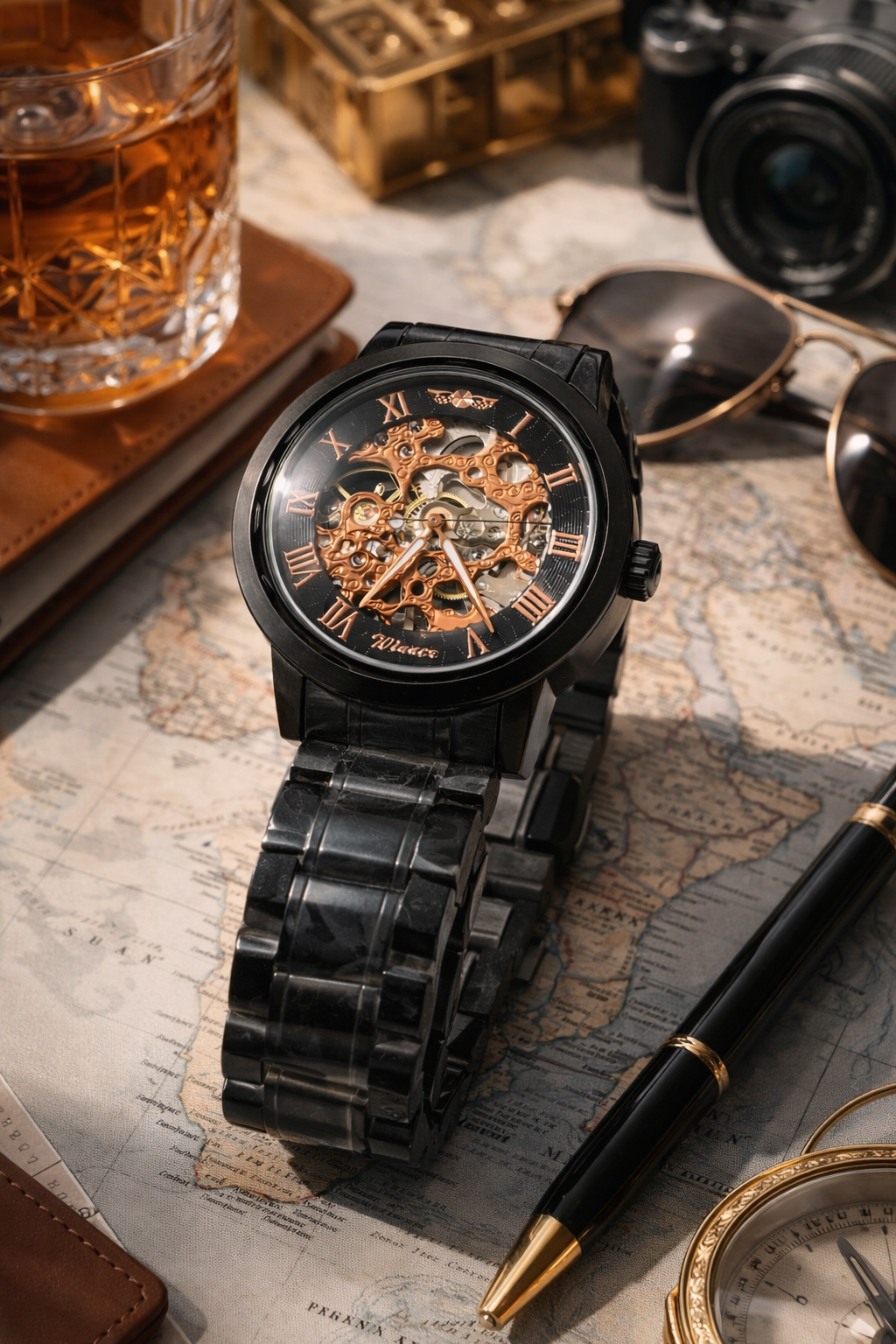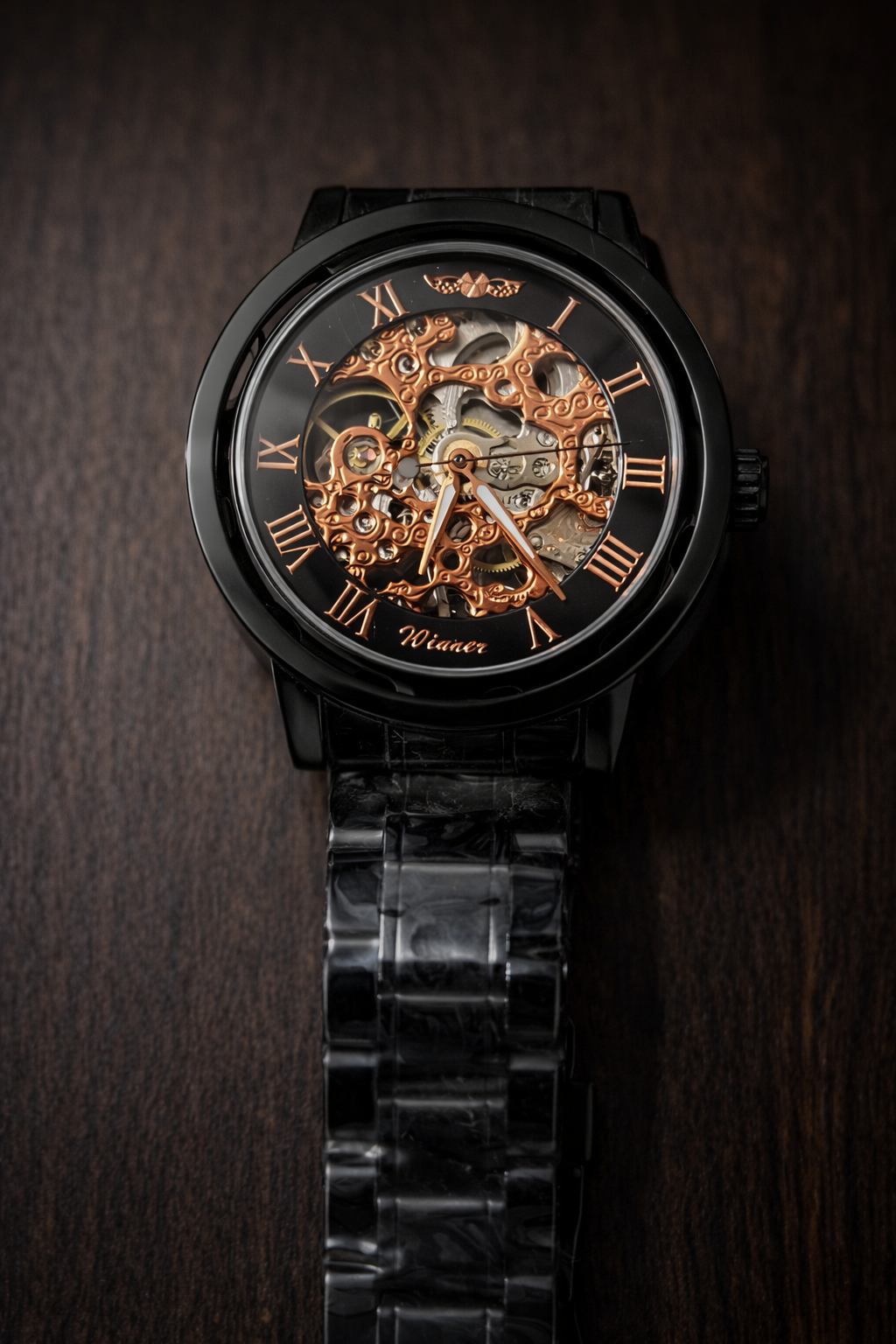 Unlike quartz watches, this mechanical timepiece allows you to see the heart of the watch in action. The exposed working gears on the dial and the transparent case back showcase the intricate movement, where each component works in perfect harmony. This is not just a watch—it is a living mechanical system, constantly in motion.