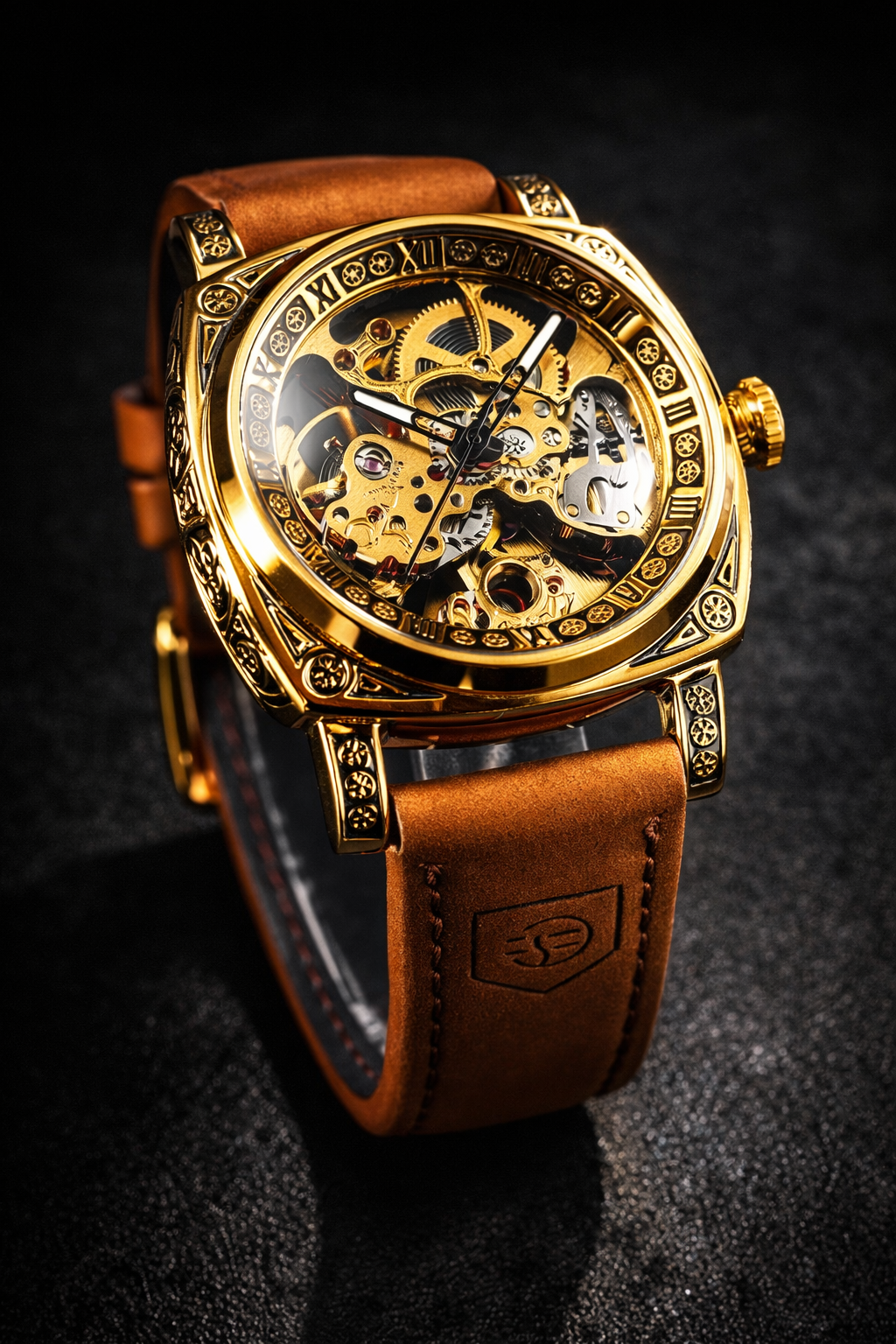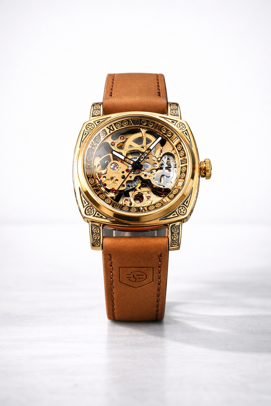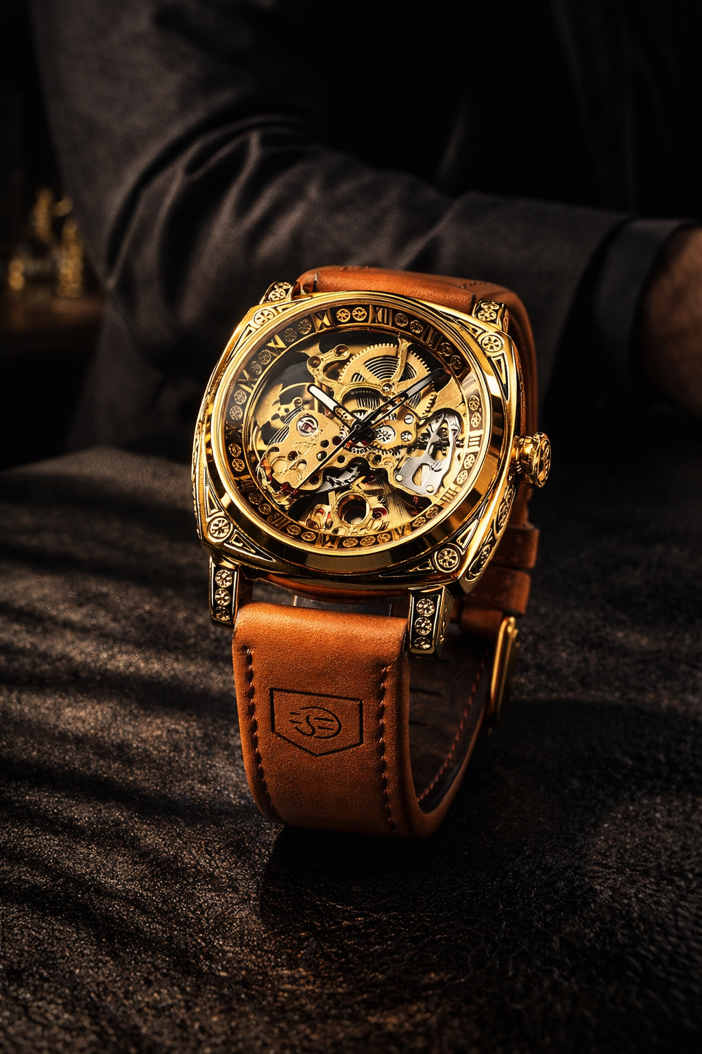 Unlike quartz watches, this mechanical timepiece allows you to see the heart of the watch in action. The exposed working gears on the dial and the transparent case back showcase the intricate movement, where each component works in perfect harmony. This is not just a watch—it is a living mechanical system, constantly in motion.