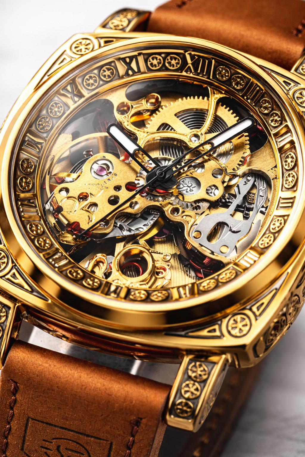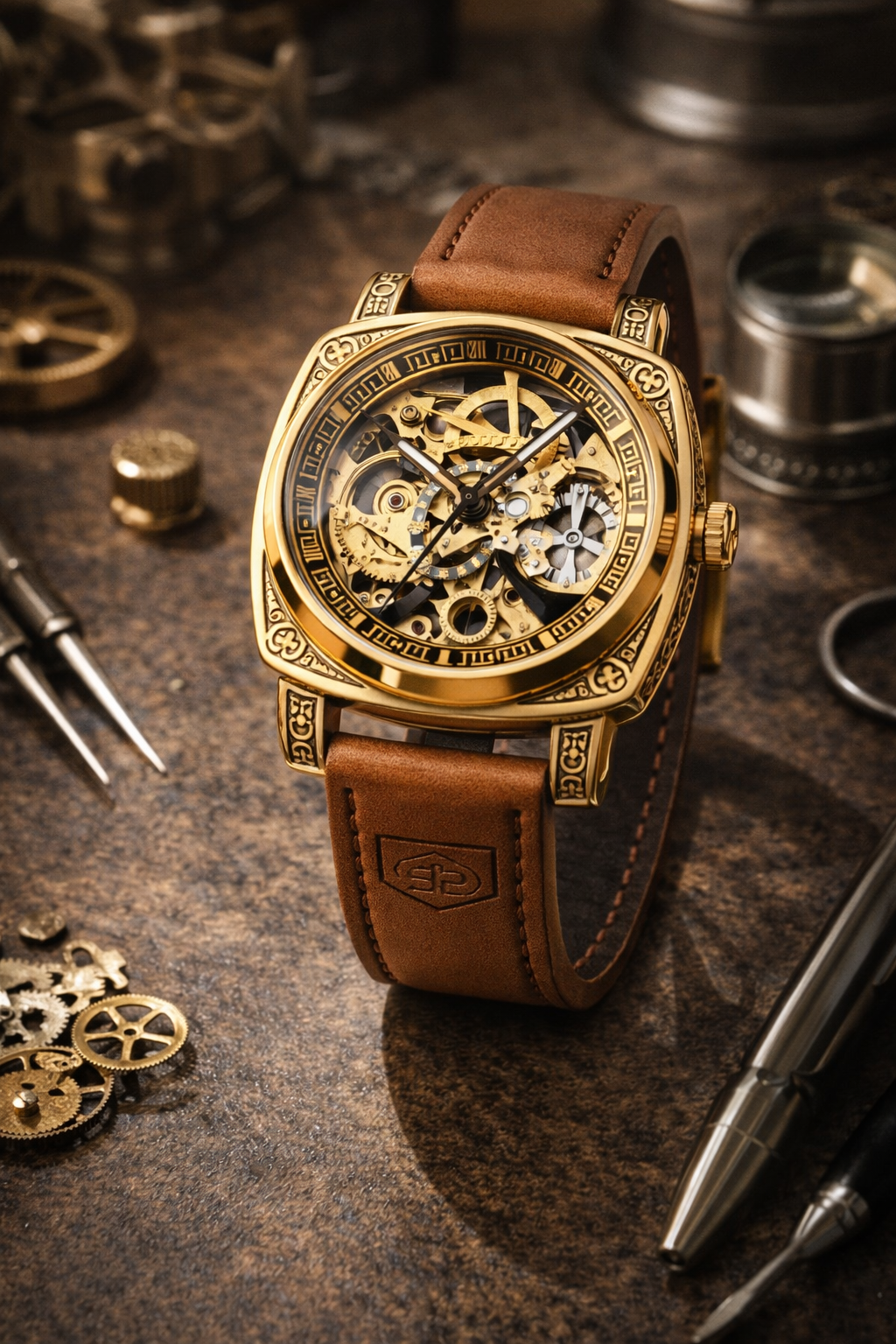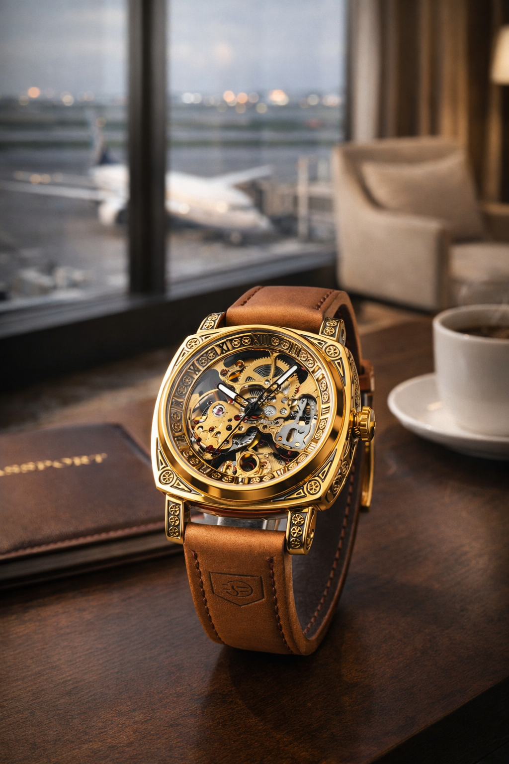 Unlike quartz watches, this mechanical timepiece allows you to see the heart of the watch in action. The exposed working gears on the dial and the transparent case back showcase the intricate movement, where each component works in perfect harmony. This is not just a watch—it is a living mechanical system, constantly in motion.