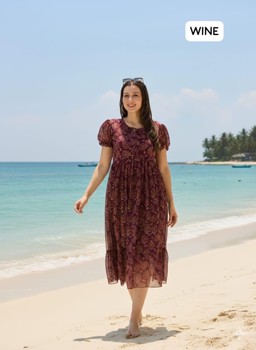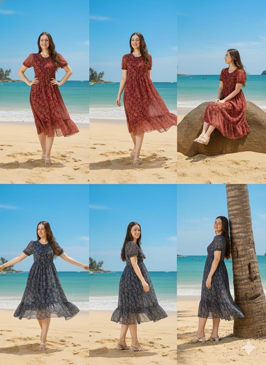 Crafted from premium georgette fabric, this dress is lightweight, breathable, and soft, offering a comfortable yet elegant drape.