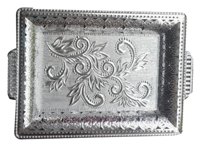 German Silver Rectangle Serving Tray with Designer Fancy Floral Pattern, 30 cm x 22 cm