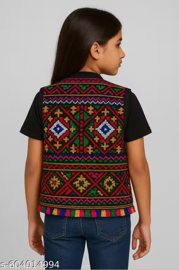 Girl's Kutchi Mirror Work Ethnic Waist Coat – Traditional Embroidered Koti for Navratri/Rajasthani Festivals (Multicolor)