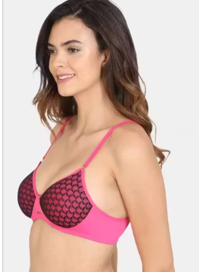 This pink three-quarter bra combines comfort, style, and support for everyday wear. Made from soft nylon elastane fabric, it is lightly padded and non-wired, providing gentle shaping without compromising comfort. The ethnic motif print adds a subtle touch of style, while the seamless design ensures smooth wear under any outfit. Adjustable straps and back closure make it perfect for daily use, offering a secure and personalized fit.