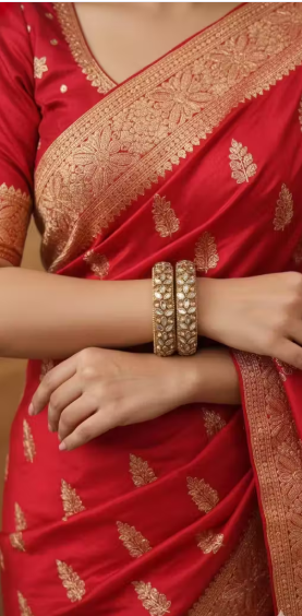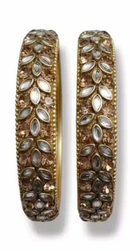 Elevate your ethnic party look with this elegant gold-toned glass bangle set, adorned with Cubic Zirconia (American Diamond) stones for a subtle sparkle. Designed in a minimal style, these non-adjustable bangles feature a secure foldover closure, making them both stylish and comfortable. Perfect for weddings, festive events, and traditional celebrations, this beautifully crafted set is made in India.