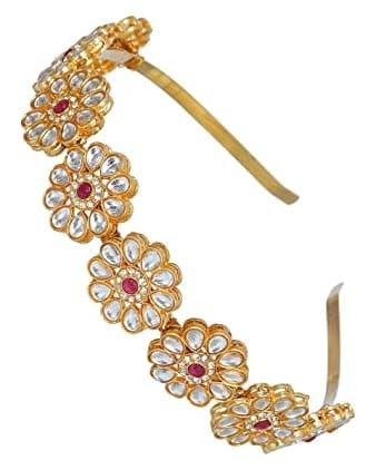 Gold Plated Brass Kundan Flower Design Hairband Mathapatti For Women/Girls/Bride