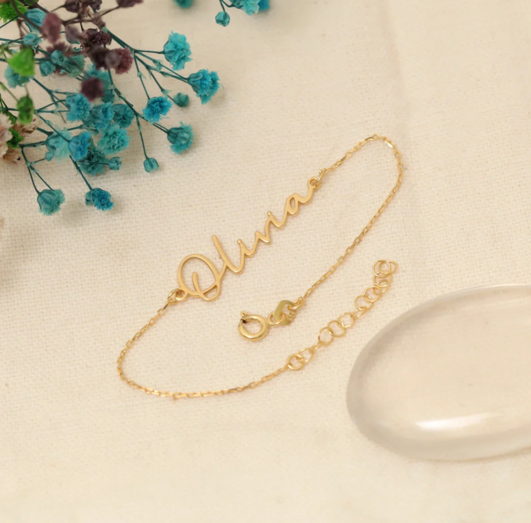 Elevate your gifting game with our Gold Plated Custom Name Bracelet. Perfect for birthdays, Valentines Day or as a thoughtful friendship or Mother's Day gift. Personalize with a name for a one-of-a-kind piece. Made with quality materials and expert craftsmanship. Show your love with this elegant and unique bracelet.