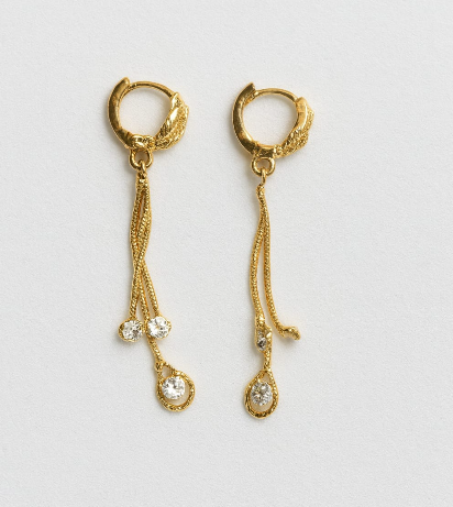 - Design: Hoop earrings with delicate dangling chains featuring crystal accents