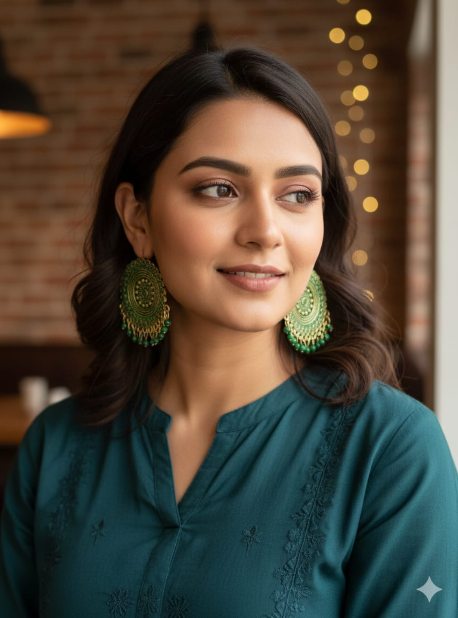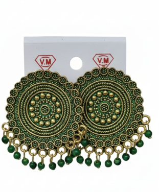 The oversized stud design adds a dramatic touch, making them perfect for weddings, festive occasions, and bridal wear. The rich gold-plated finish enhances their royal look, while the fine craftsmanship ensures timeless elegance.