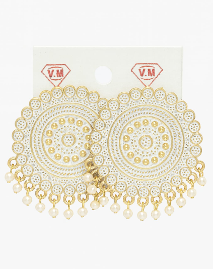 Gold-Plated Oversized Kundan and White Minakari Stud Earrings ✅