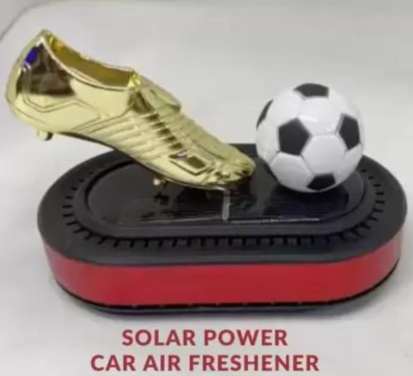 Golden Shoe With Rotating Football Car Seat Aroma Therapy | Solar powered Football & Golden boot Model Car Perfume Air Purifier - 5ml