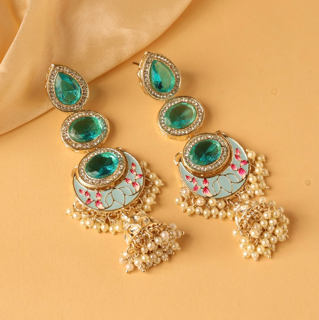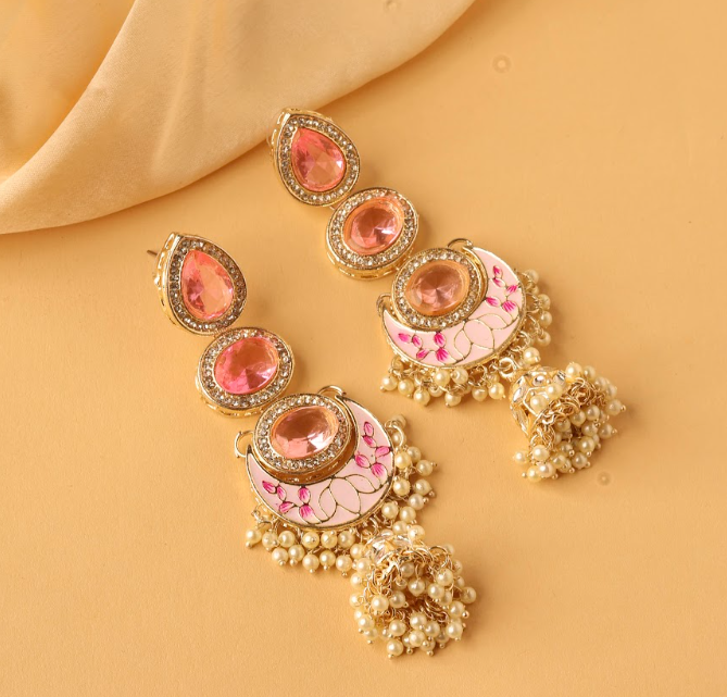 - Design: Exquisite Chandbali silhouette with jhumka (bell) style drops for graceful movement.