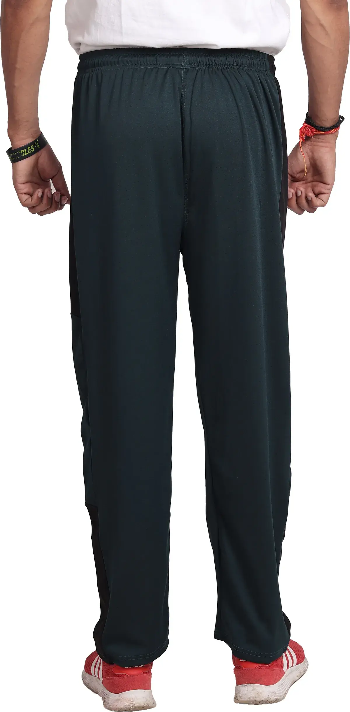 Refresh your activewear collection with these green solid track pants for men. Made from a premium lycra blend polyester fabric, they offer excellent stretch, durability, and breathable comfort for all-day wear. The elastic waistband ensures a secure and flexible fit, allowing easy movement during workouts, running, or casual activities. Designed with a sleek solid pattern and sporty look, these track pants are ideal for gym sessions, outdoor activities, and everyday wear.
