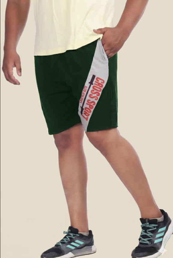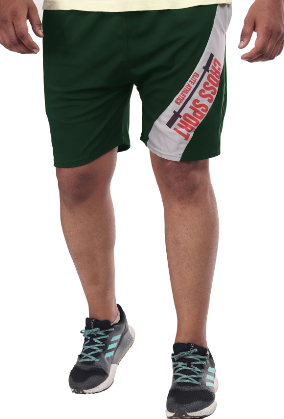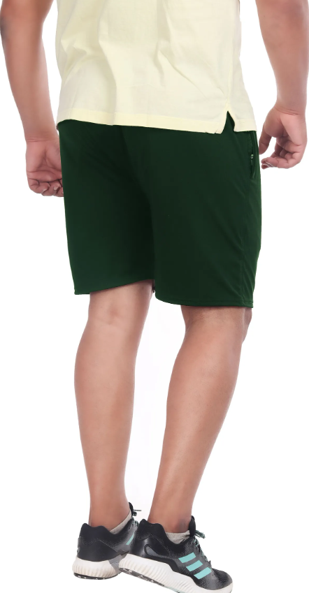 Green Lycra Blend Polyester Elasticated Solid Shorts For Men