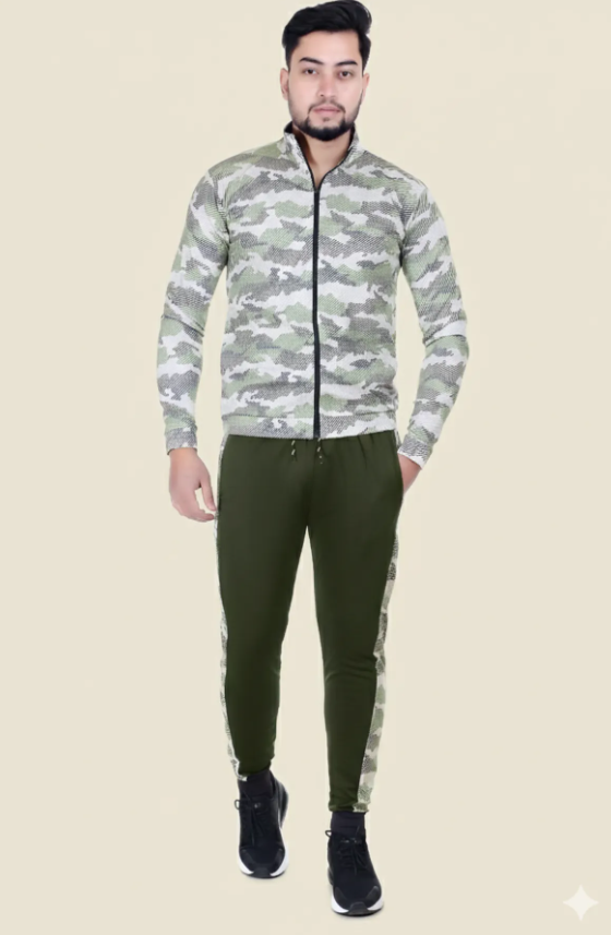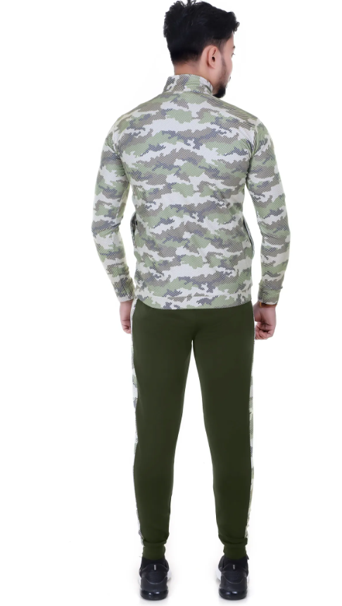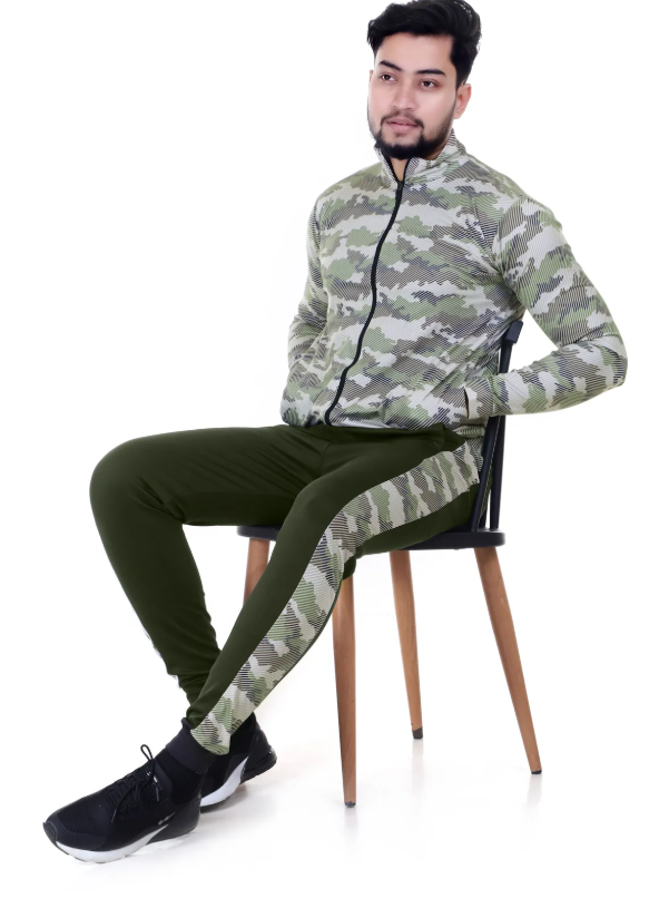 Green Lycra Blend Regular Track Suit For Men