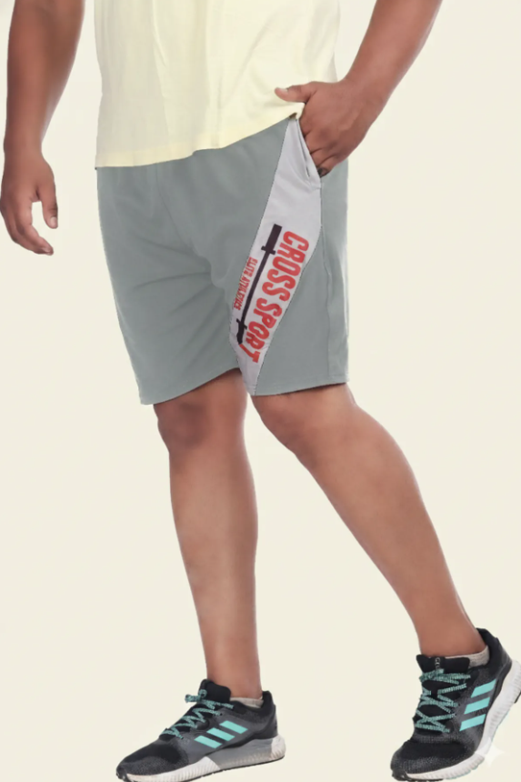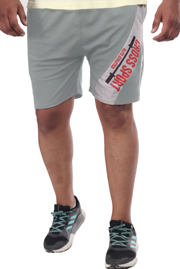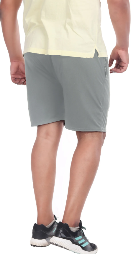 Grey Lycra Blend Polyester Elasticated Drawstring Solid Shorts For Men