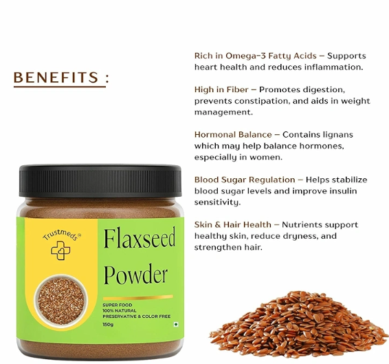 Ground Flaxseed Powder 150g (Alsi Powder) | High Omega 3 & Fiber for Digestion, Heart & Weight Loss | Trustmeds