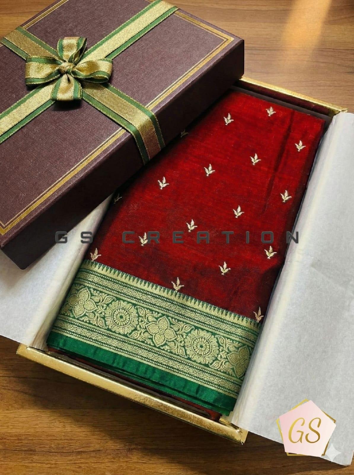 - Design: Traditional Banarasi motifs with detailed weaving