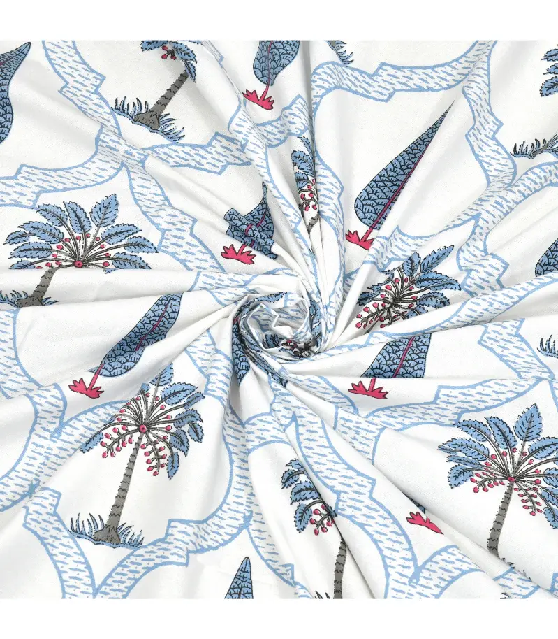 Hand Block Printed Blue Trees & Flowers Cotton Curtains/ Pure Cotton Drapes
