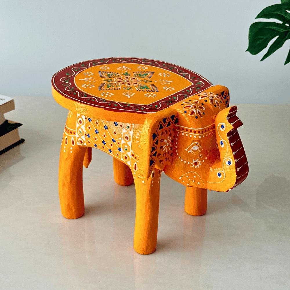 - AUTHENTIC CRAFTSMANSHIP: Traditional handmade wooden elephant table with intricate hand-painted details and vibrant folk art designs
