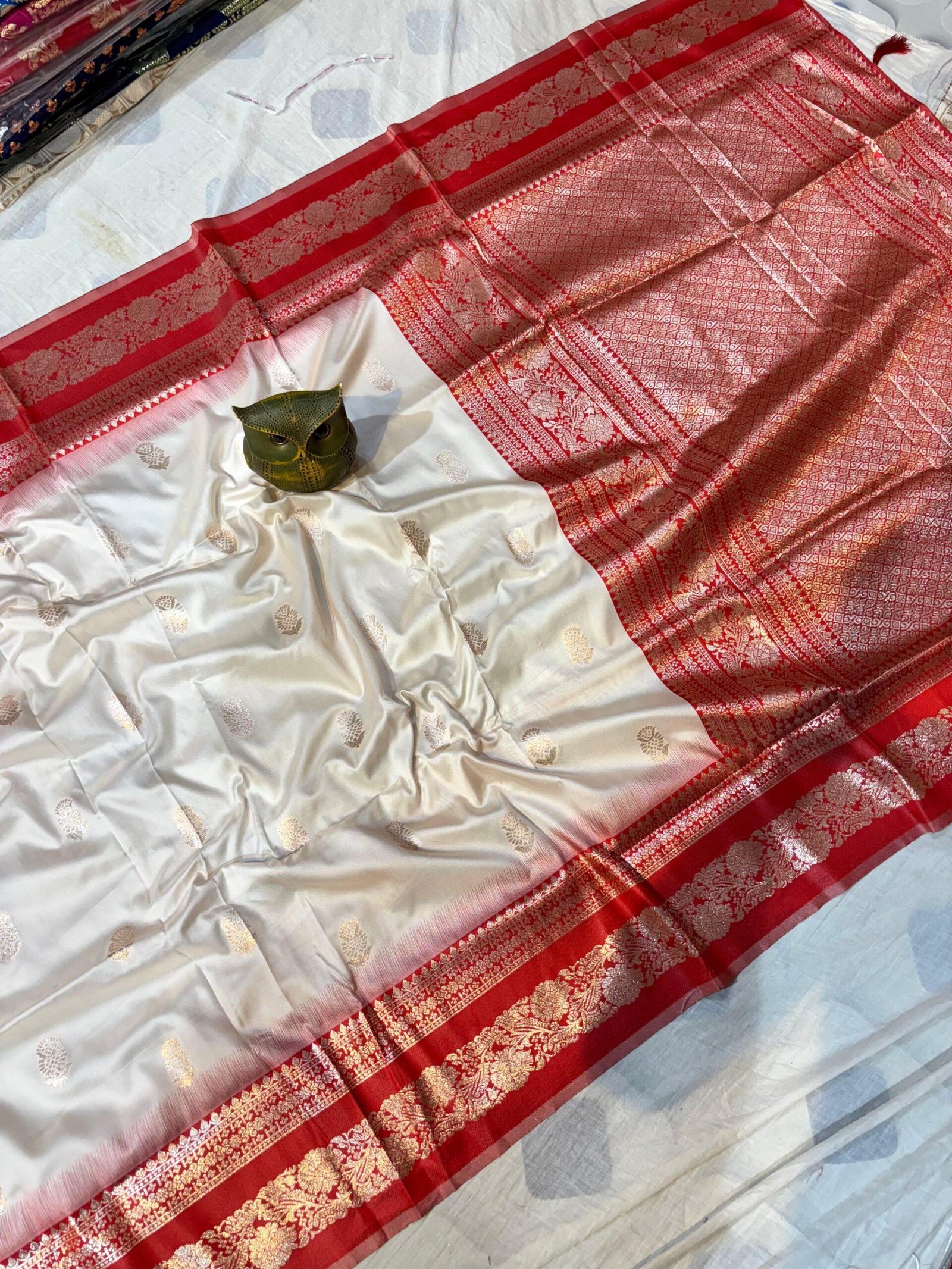 Design: Golden zari floral buttas with intricately woven pallu & border