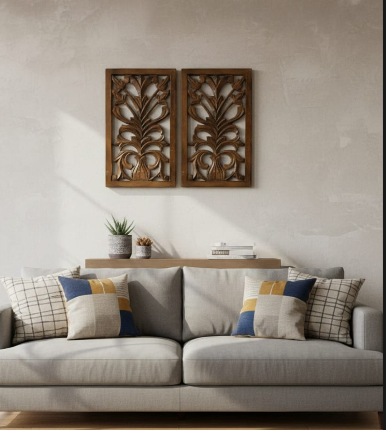 Add a touch of elegance and craftsmanship to your home with this HANDICRAFT wooden panel set, perfect for enhancing the beauty of your walls. Crafted from high-quality wood with a natural brown finish, each panel showcases intricate design work that reflects traditional artistry while complementing modern interiors.