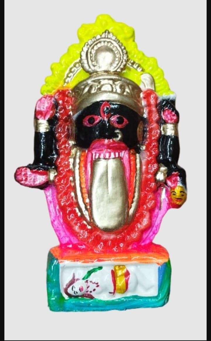 Handicrafts Clay Kalighat Kali Maa Idol – 18 cm | Handmade Terracotta Goddess Kali Figurine for Home & Temple Decor