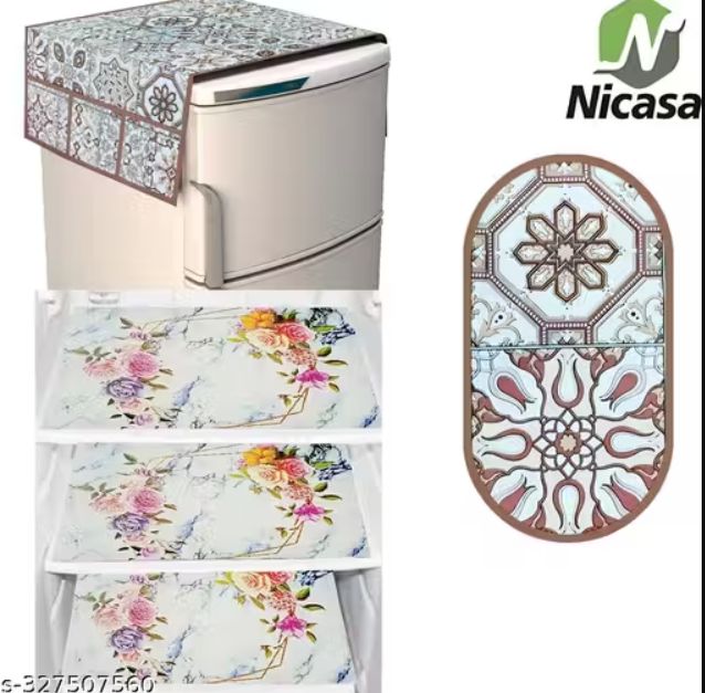 HD Premium Quality Fridge cover for Top with 1 Pec of handle and 3 pec of fridge mat - set of 5 pec