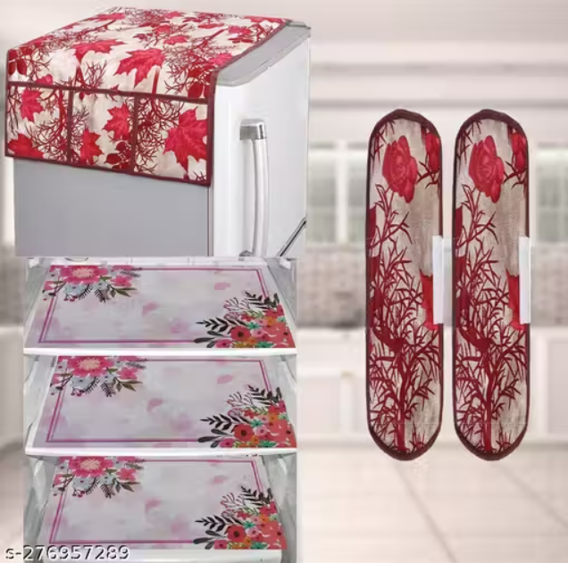 HD Premium Quality Fridge cover for Top with 2 Pec of handle and 3 pec of Fridge Mats - Set of 6 piece