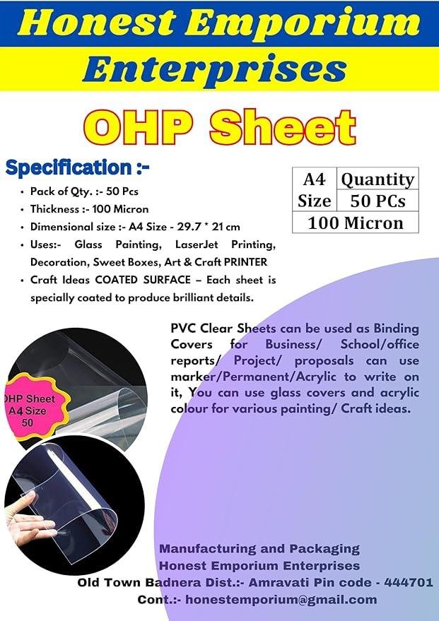 - Uses of OHP sheets :- Presentation Visuals, Education and Training, Transparency and Clarity, Interactivity, Visual aids write in proper