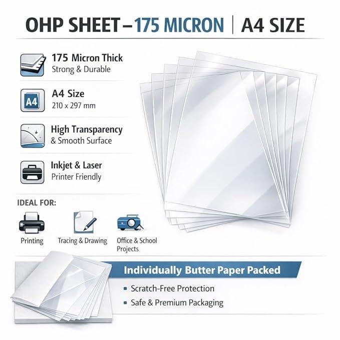 - Micron of OHP Sheet :- 175 micron