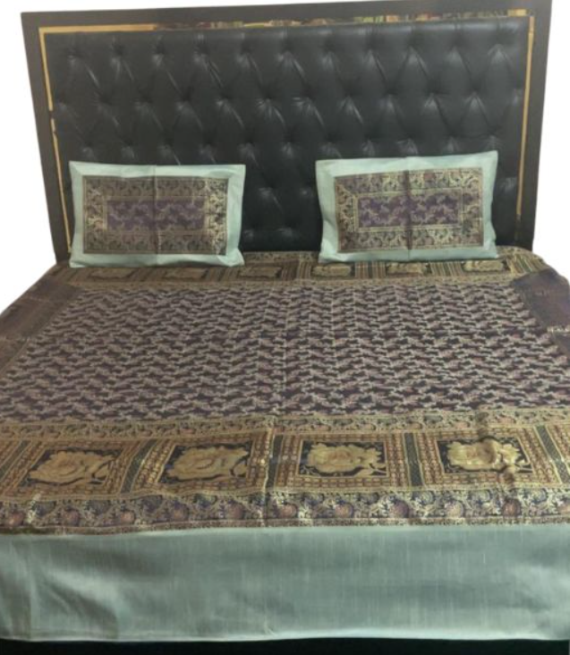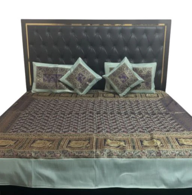 Give your bedroom a luxurious royal makeover with this exquisitely crafted Pure Banarasi Brocade Bed Cover Set. Designed with rich traditional motifs and superior craftsmanship, this set brings timeless elegance, comfort, and sophistication to your living space.