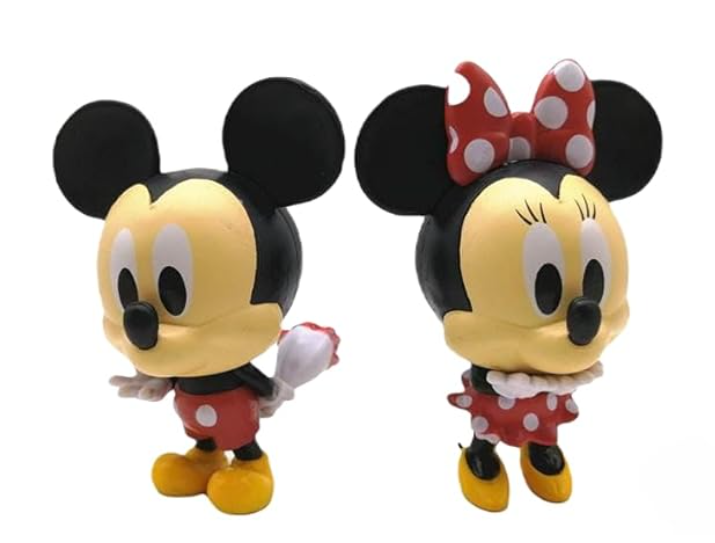 Iconic Mickey-Minnie Mouse Keychains, 2 Pcs PVC Figures for Cake Decorating, Table Decor, Themed Party Decorations, 10 cm