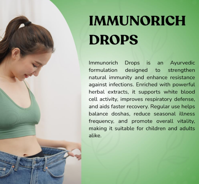 - it boosts healthy immune system. immunorich drops repair nervous system damage and tissue repair, improve feeling and sense of well being. it also slow down the aging process. immunorich drops increase stamina and vitality, and improve athletic performance
